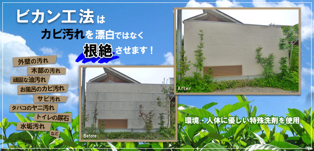 HOME 環境メンテナンス事業 ビカン工法 施工事例 会社概要 プライバシーポリシー お問合せ